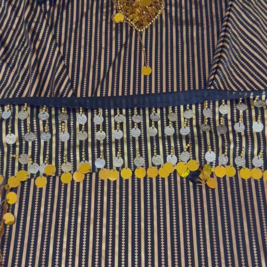 This beautiful Egyptian belly dance dress with bra is the perfect addition to your dance wardrobe. Handmade with intricate embellishments, this dress is not only stylish but also comfortable to wear. The dress is made in Egypt and features a multi-coloured design that is sure to catch the eye of any audience. The dress is suitable for belly dancing and comes in one size that fits all regular sizes and not plus sizes. It is a perfect choice for any woman who wants to look elegant and sophisticated while dancing. The dress is available in the Women's Dancewear category and can be ordered now.