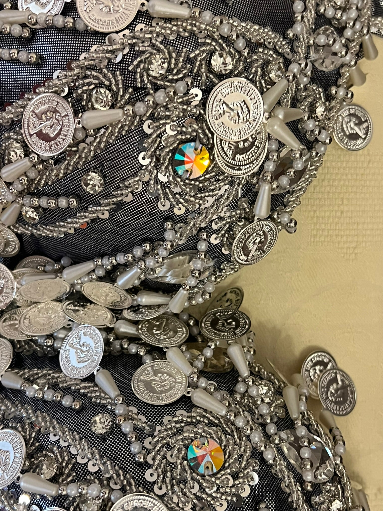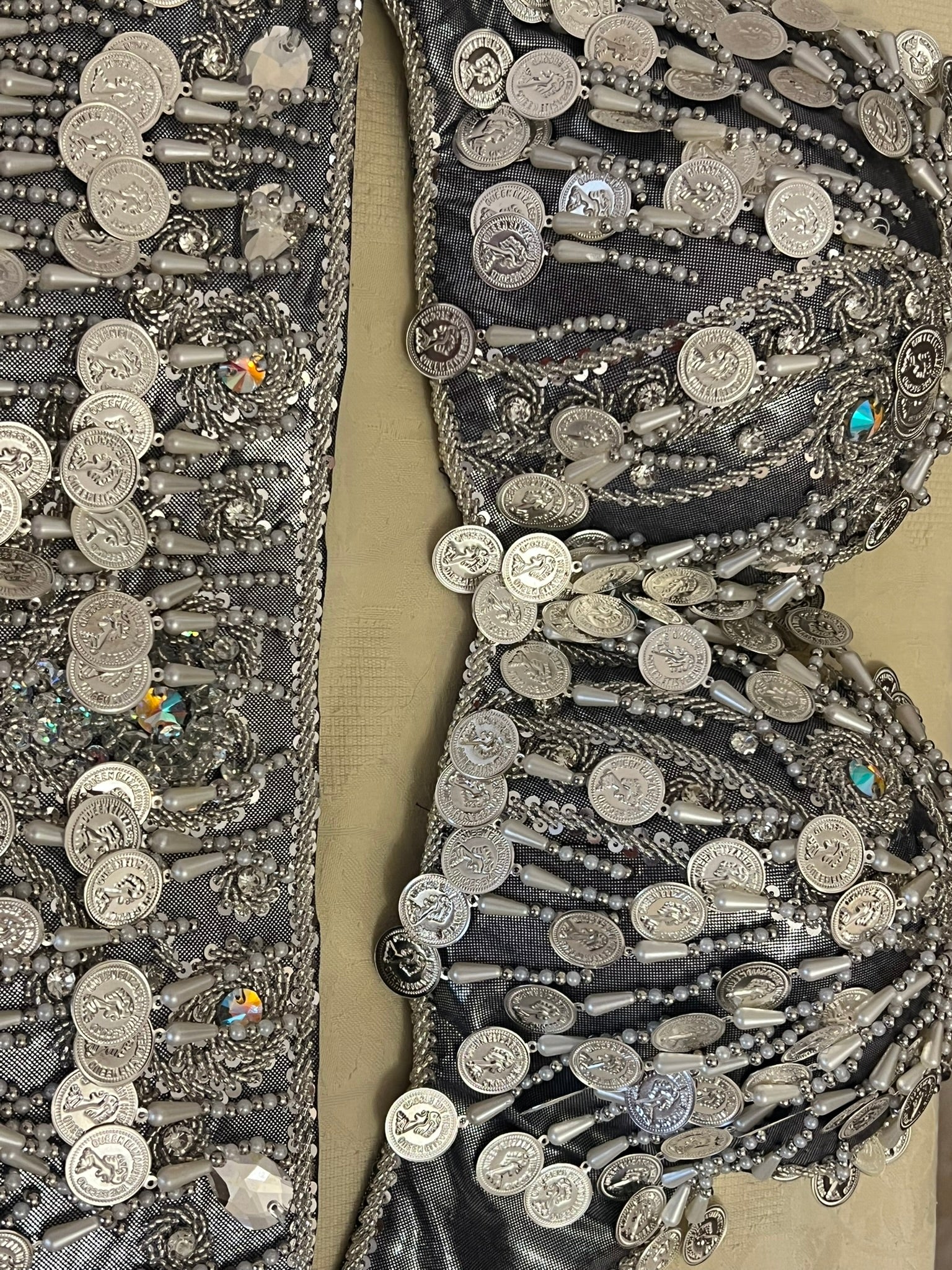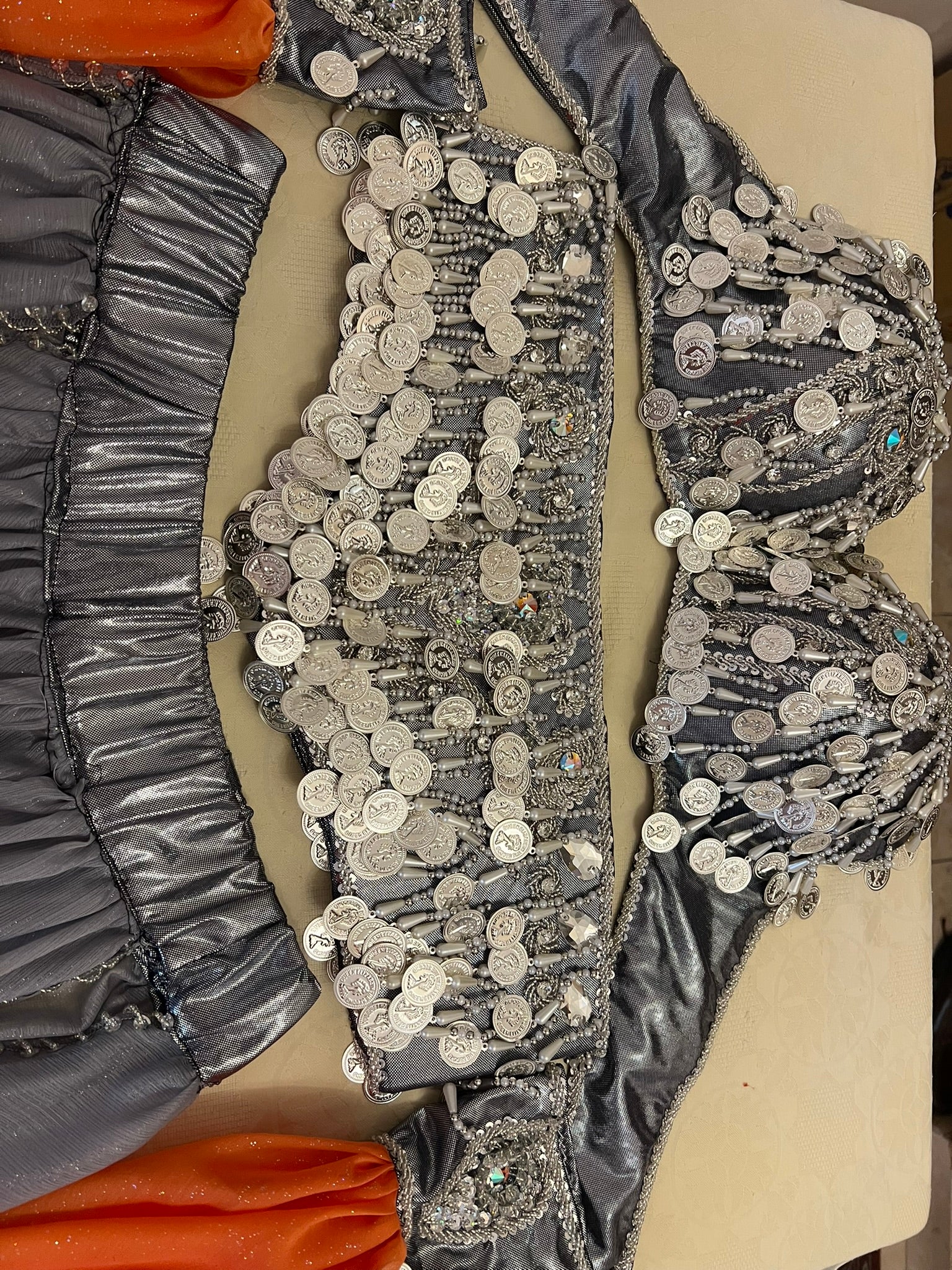 Bring the magic of Egyptian craftsmanship to your dance wardrobe with this luxurious belly dance costume—a true statement piece that celebrates movement, beauty, and tradition.