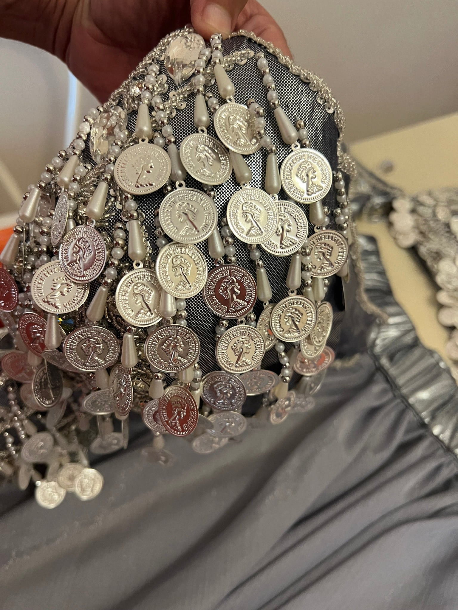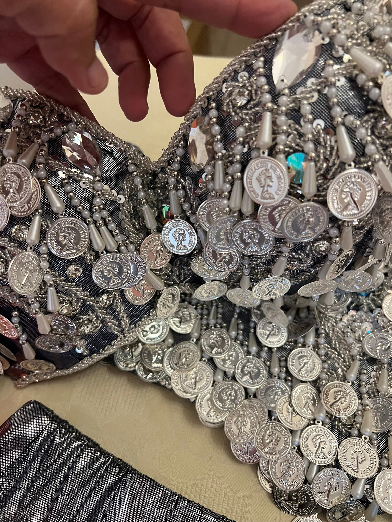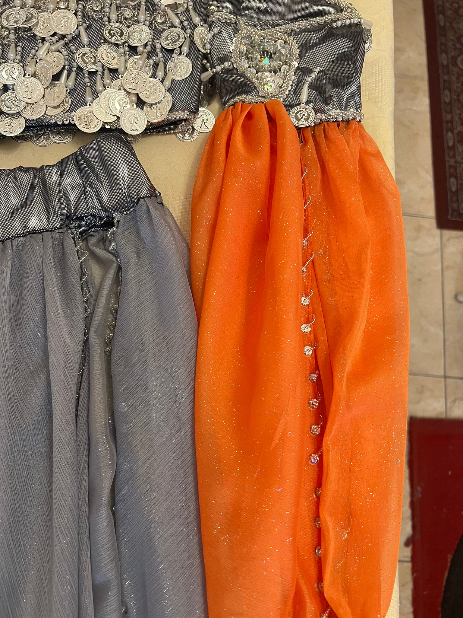 Bring the magic of Egyptian craftsmanship to your dance wardrobe with this luxurious belly dance costume—a true statement piece that celebrates movement, beauty, and tradition.